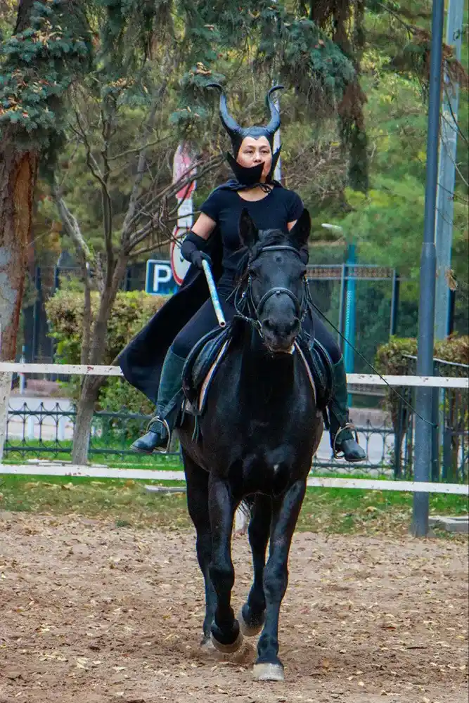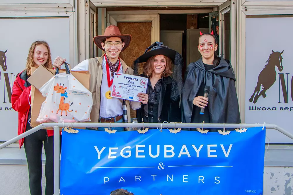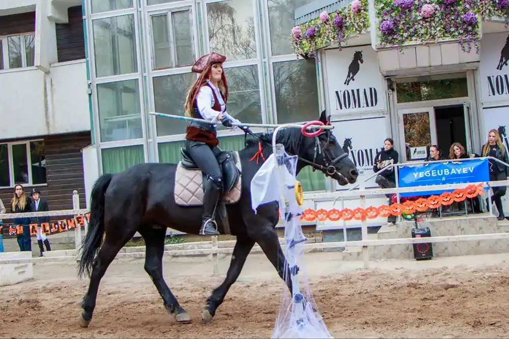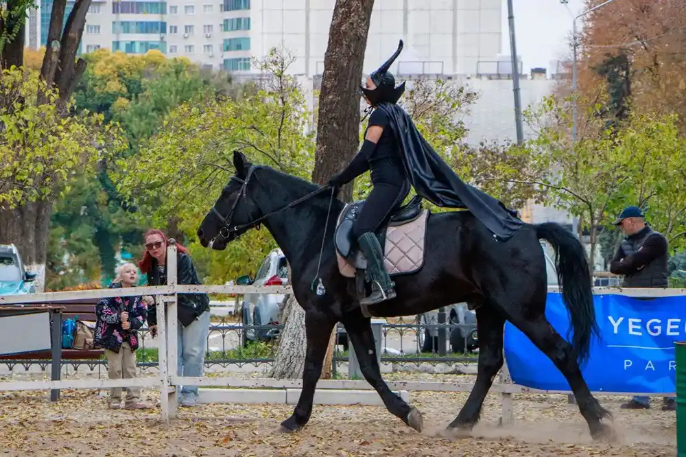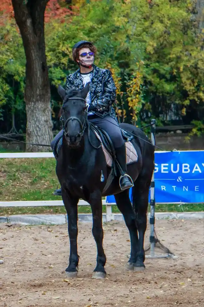 27 октября Школа верховой езды «Номад» задала по‑настоящему яркий тон сезону: хеллоуинские соревнования превратили площадку в стильное пространство, где спортивная точность встретилась с креативом и свободной атмосферой. На старт вышли 17 пар всадников — каждая в своём образе, уверенная, собранная и готовая показать характер.